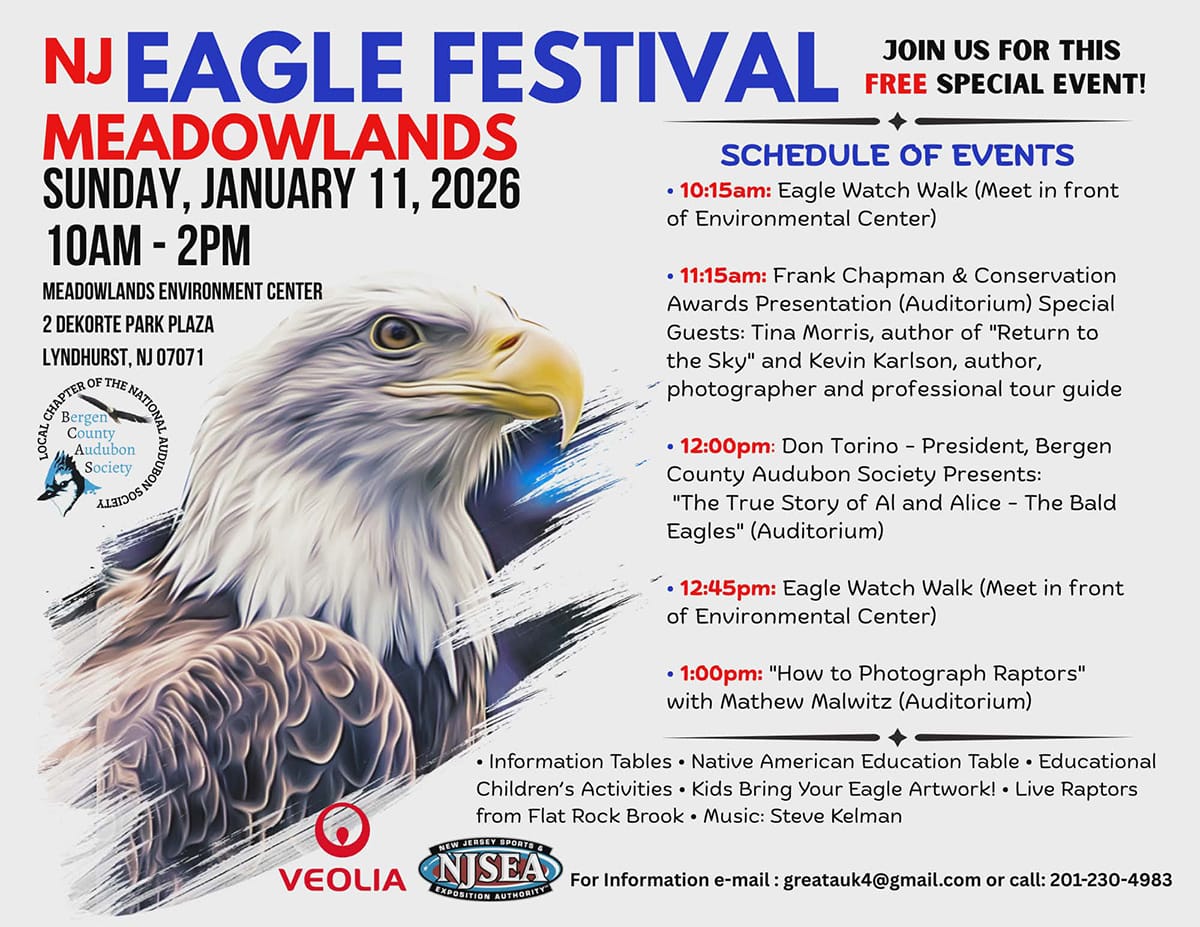 Join WFDU at the New Jersey Meadowlands Eagle Festival on Sunday, January 11th, from 10 am to 2 pm in the Meadowlands Environment Center at Dekorte Park in Lyndhurst, NJ! 🦅🌾